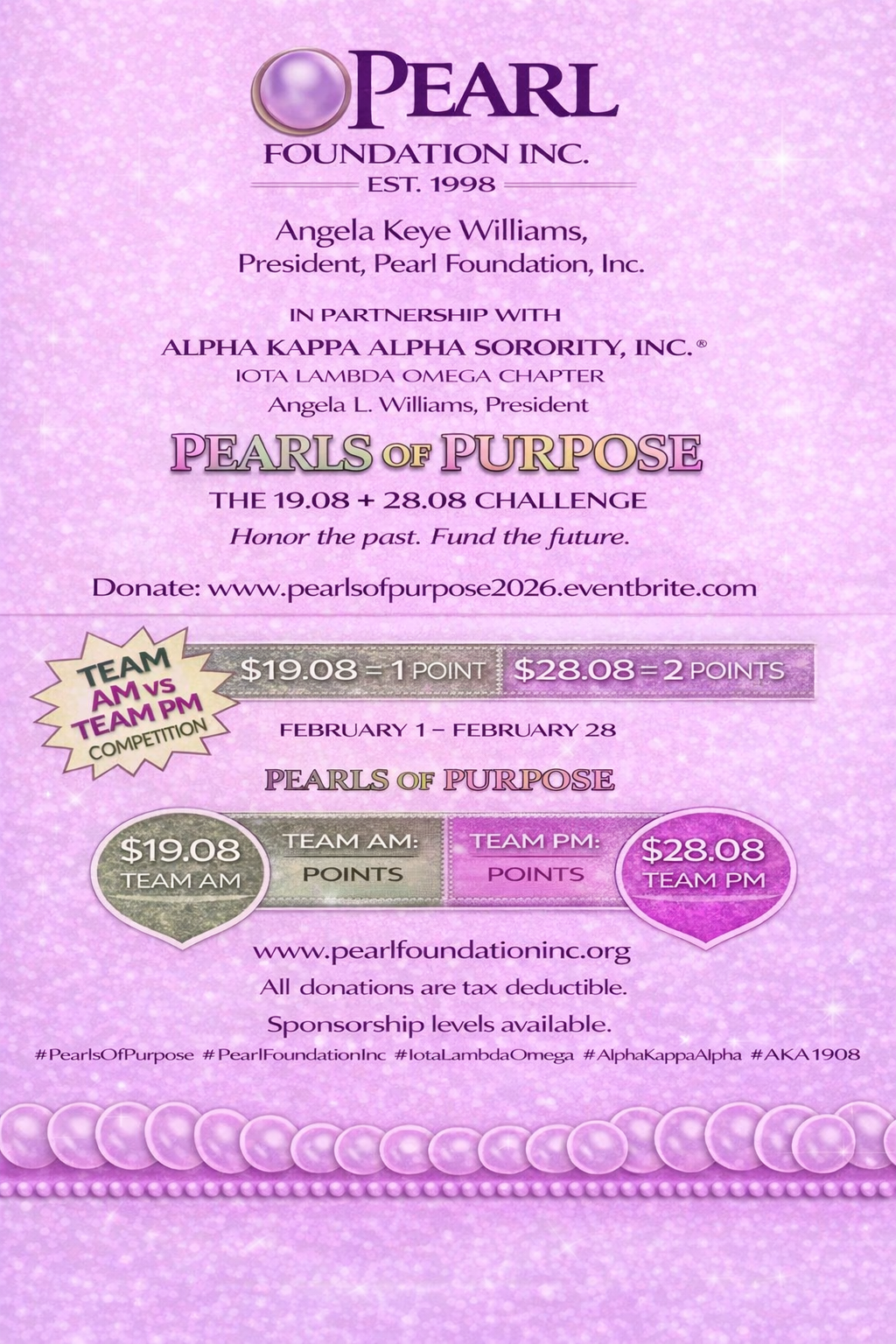 welcome Welcome! We are delighted to share information about the Pearl Foundation, Inc. and our signature programs. Our organization partners with Alpha Kappa Alpha Sorority, Inc ®. Iota Lambda Omega Chapter of Howard County to support program initiatives. We strive to make a lasting positive and impactful difference in our community. This is something that we are proud of and celebrate.